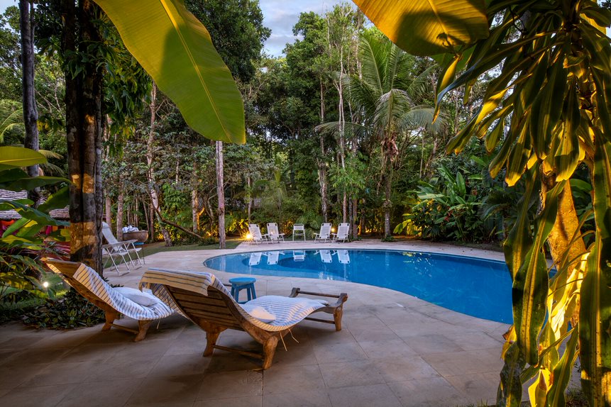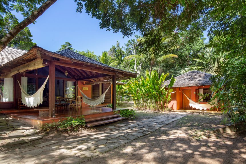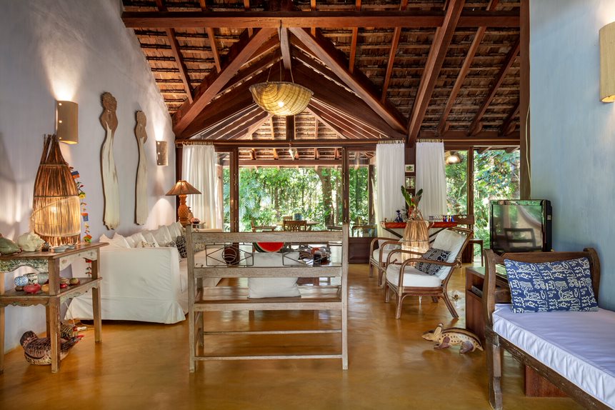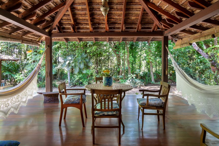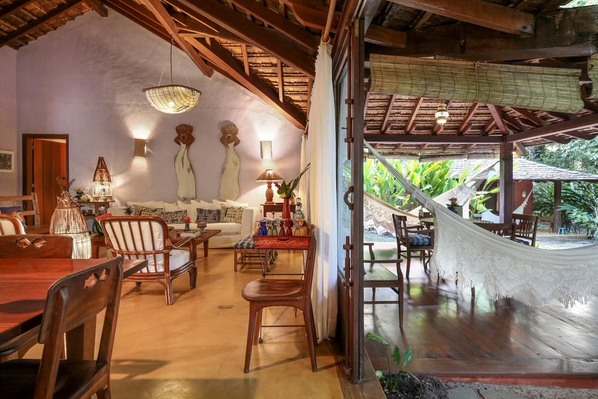 Casa localizada no Bairro João Vieira, em meio à natureza exuberante, com arquitetura típica de Trancoso. Situada em rua sem saída e sem circulação de carros, garantindo total privacidade e tranquilidade.